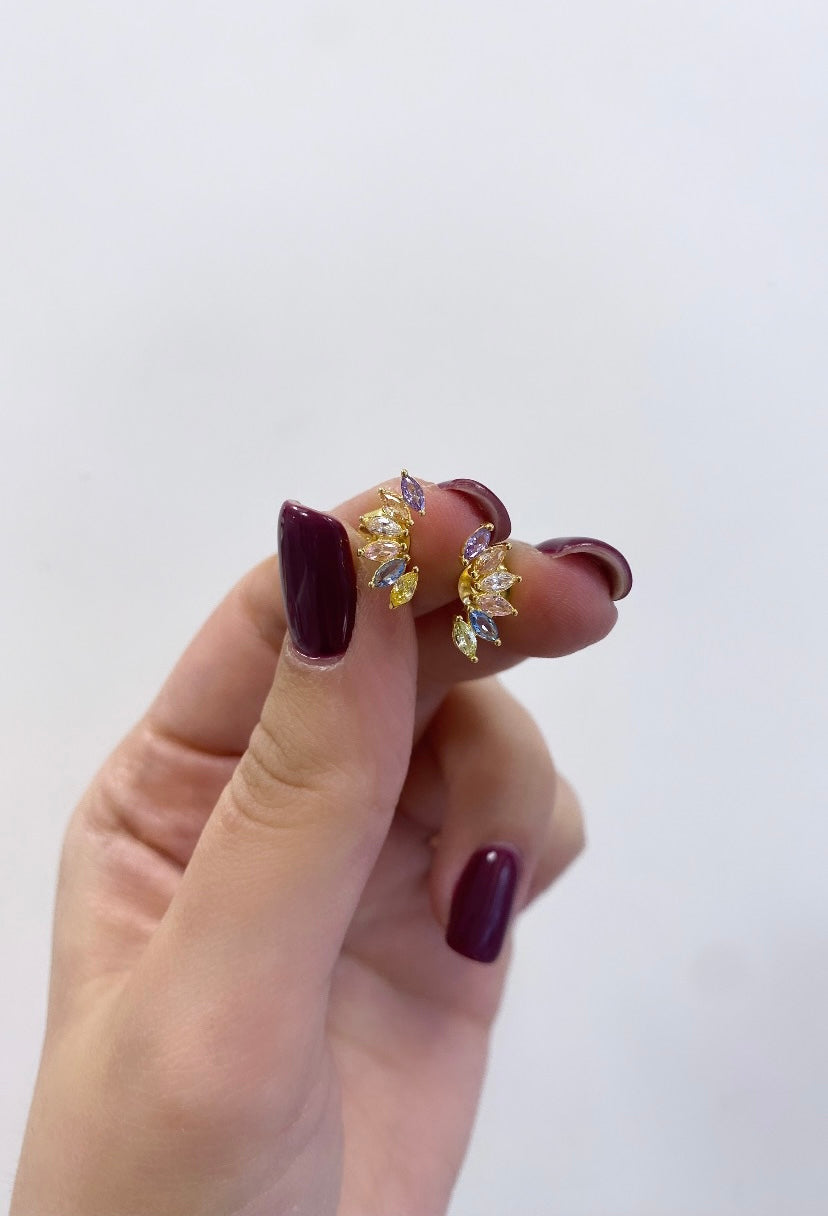 Orecchino al lobo in argento 925 gold con 5 petali di zirconi.