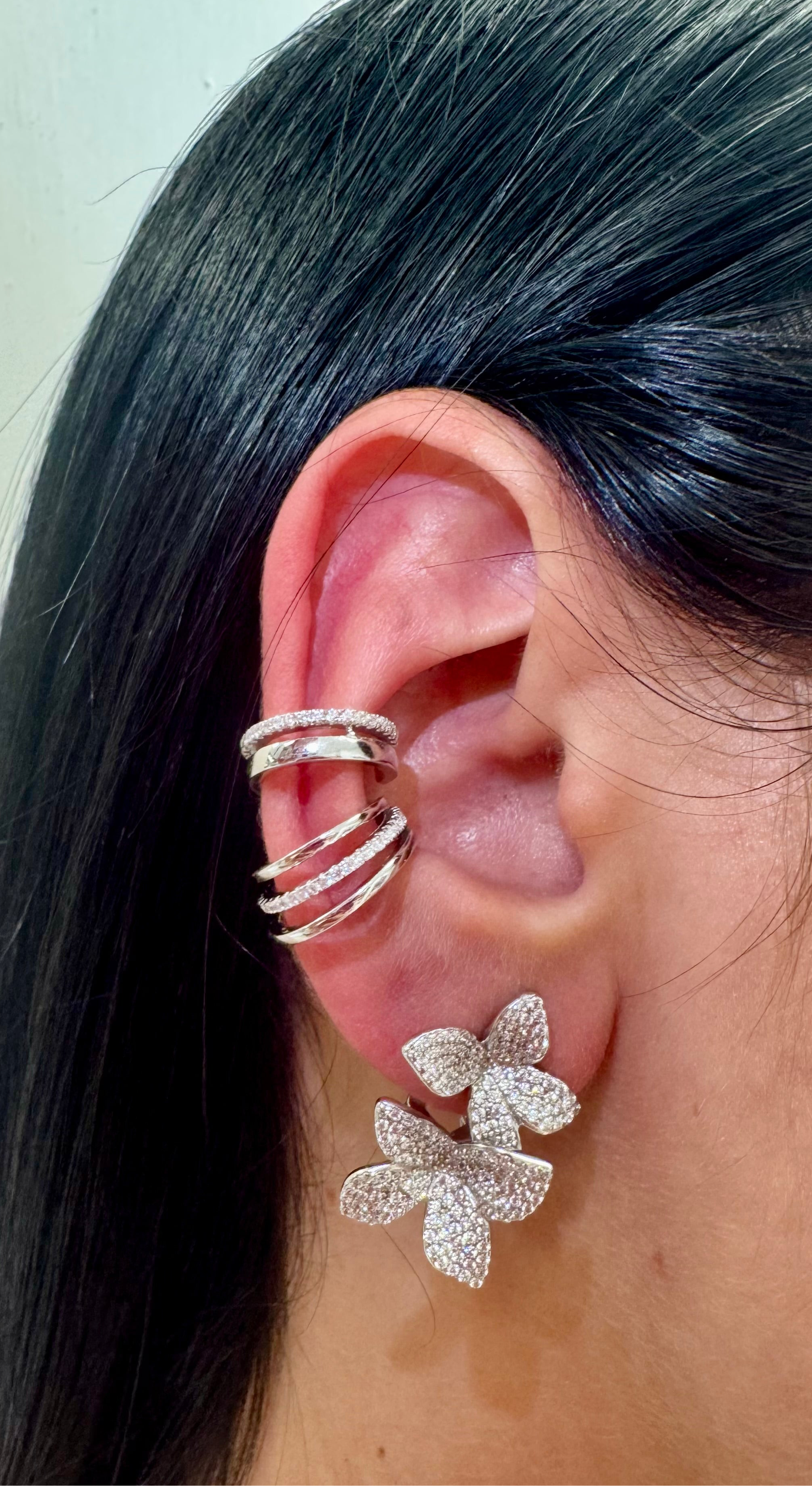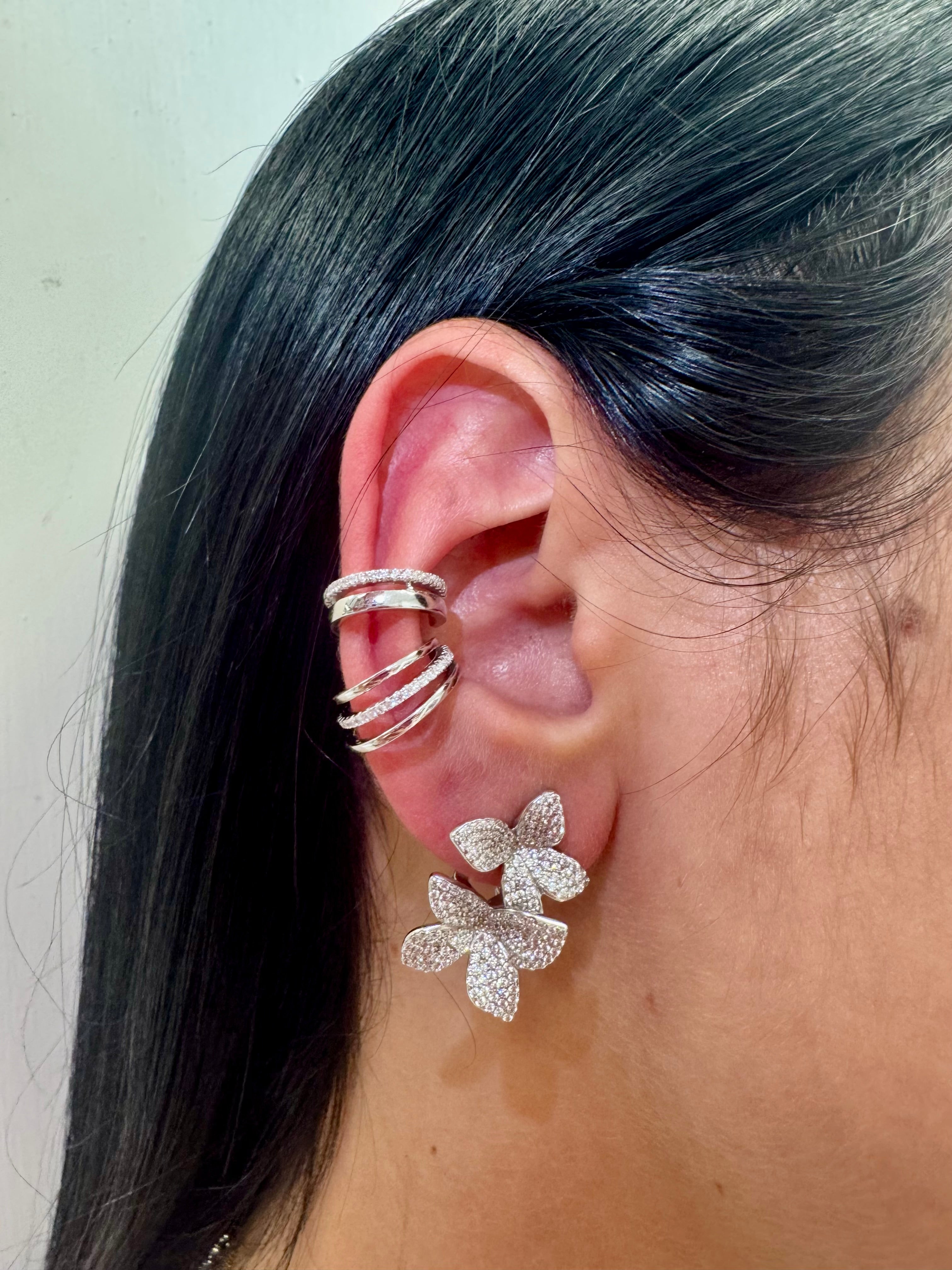 Orecchino In argento 925 pendente con chiusura accompagnata da automatico e zirconi a Pavè.