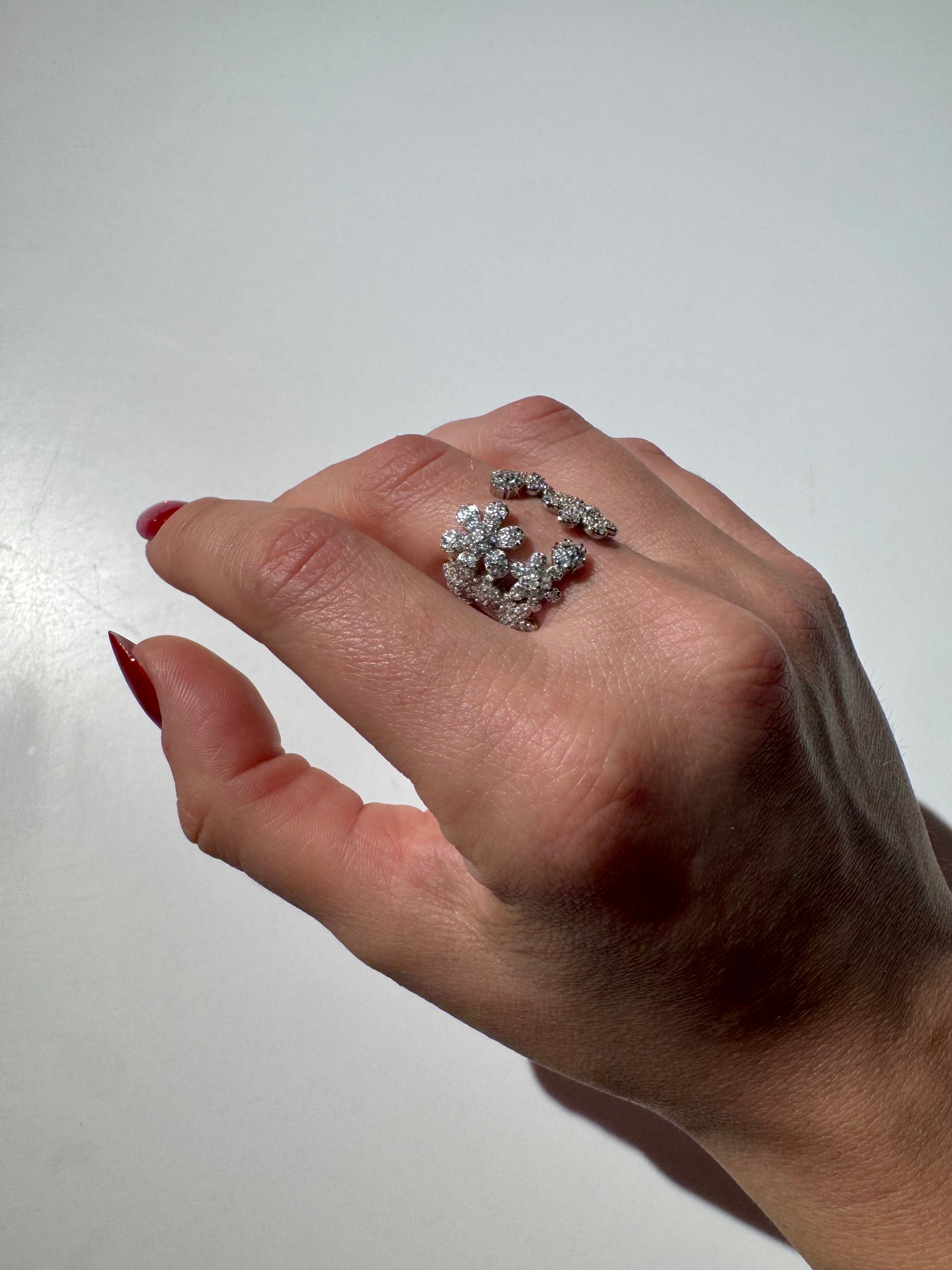 Un anello romantico e sofisticato, ideale per chi ama i dettagli luminosi e il design floreale.