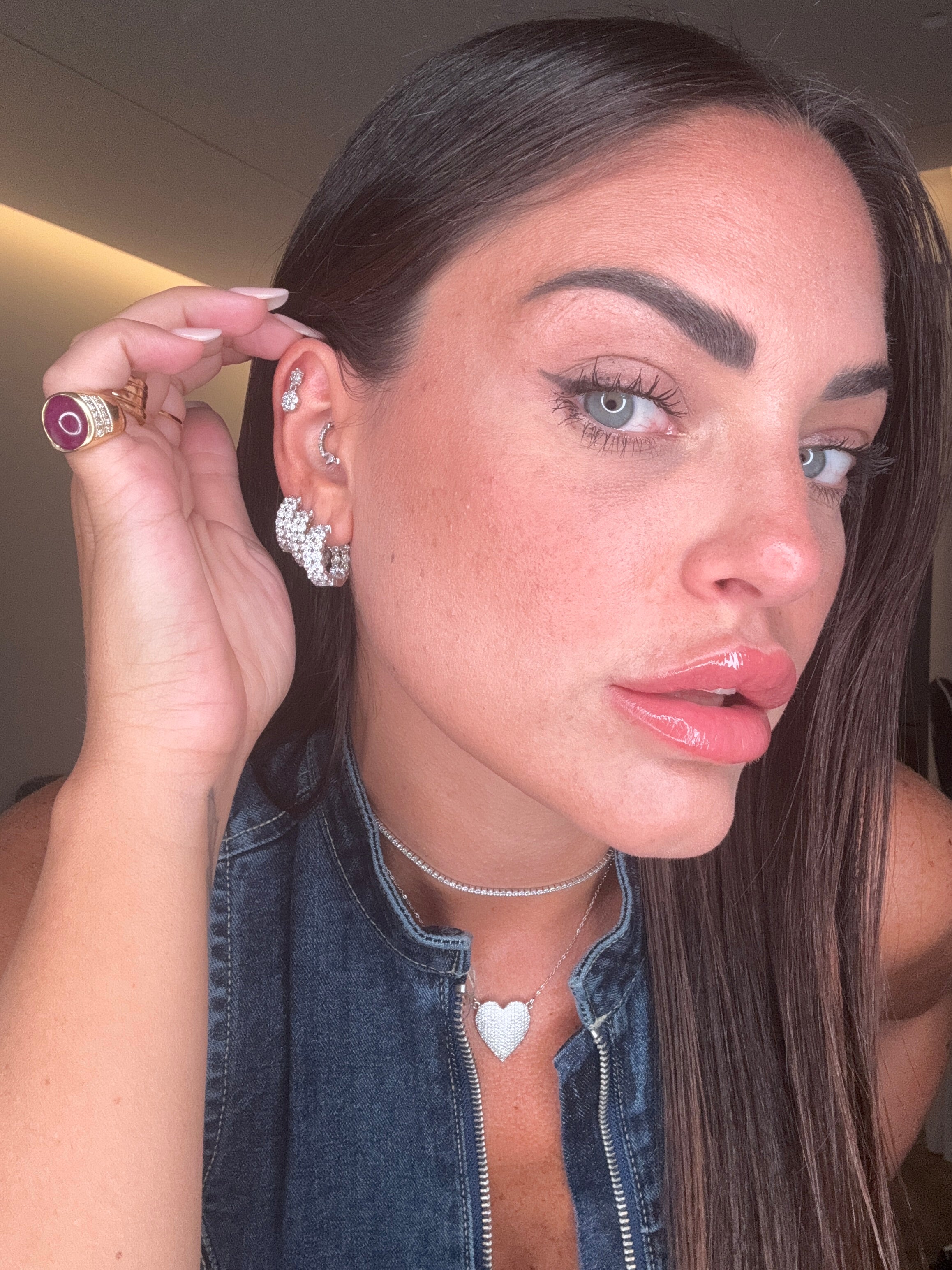 Cerchi in argento 925 con doppia fascia di zirconi, misura media.